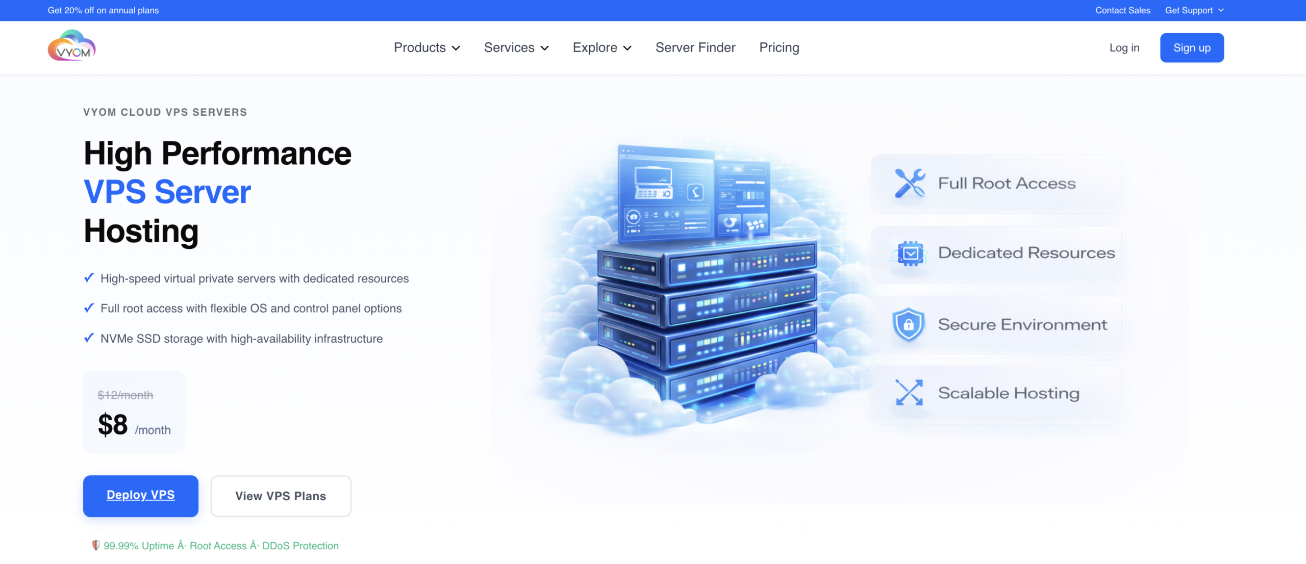 Vyom Cloud is an Indian cloud hosting provider offering VPS solutions built for performance and reliability. Its infrastructure is designed to support businesses that require consistent computing power for production websites, SaaS platforms, and enterprise applications.