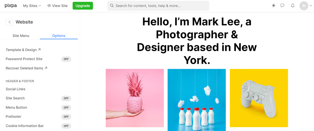This all-in-one photography website builder may suit those wanting to display and sell their work online. With Pixpa, users can easily create a beautiful photography website, since it offers a drag-and-drop editor with more than 150 responsive templates.