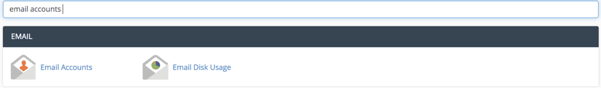 In your cPanel’s main dashboard, navigate to the Email section, or simply search for the Email Accounts tool.