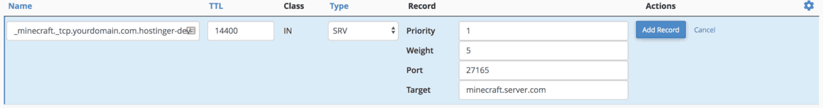 In this tutorial for cPanel, we’ll use Minecraft as an example. You can get the value details directly from the service provider — they will generate the SRV record details for you. Now, let’s add them.
