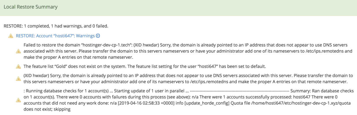 Please be aware that the backup generation and transfer can take some time, as it depends on your account’s size. When your data is fully transferred, we’re going to restore the backup on your new VPS.