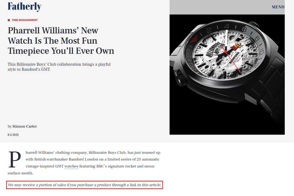 There are various options to disclose an affiliate link. For example, Fatherly includes a disclaimer under specific articles about its products.