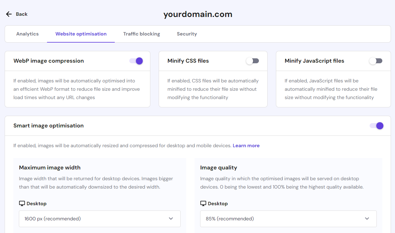 The plugin comes with a one-click setup and automated tools. Simply create an account and insert your API key to activate it. The tools will then automatically run in the background to optimize your images.