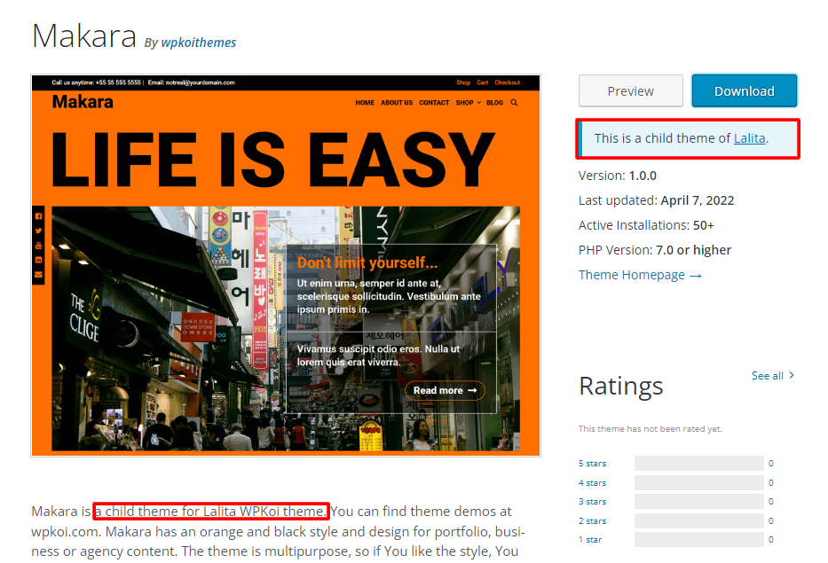 Once you decide on a theme, check the ratings and read the reviews before activating it.