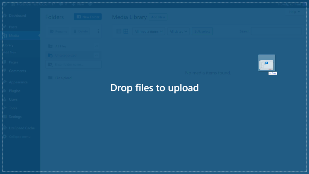 Another easy way to upload files and folders is to use the file manager’s drag and drop functionality. We’ll use the FileBird plugin as an example.