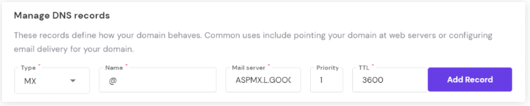 Se si desidera utilizzare un client di posta elettronica di terze parti come Google Workspace, è necessario cambiare ogni record MX predefinito con quello di Google.