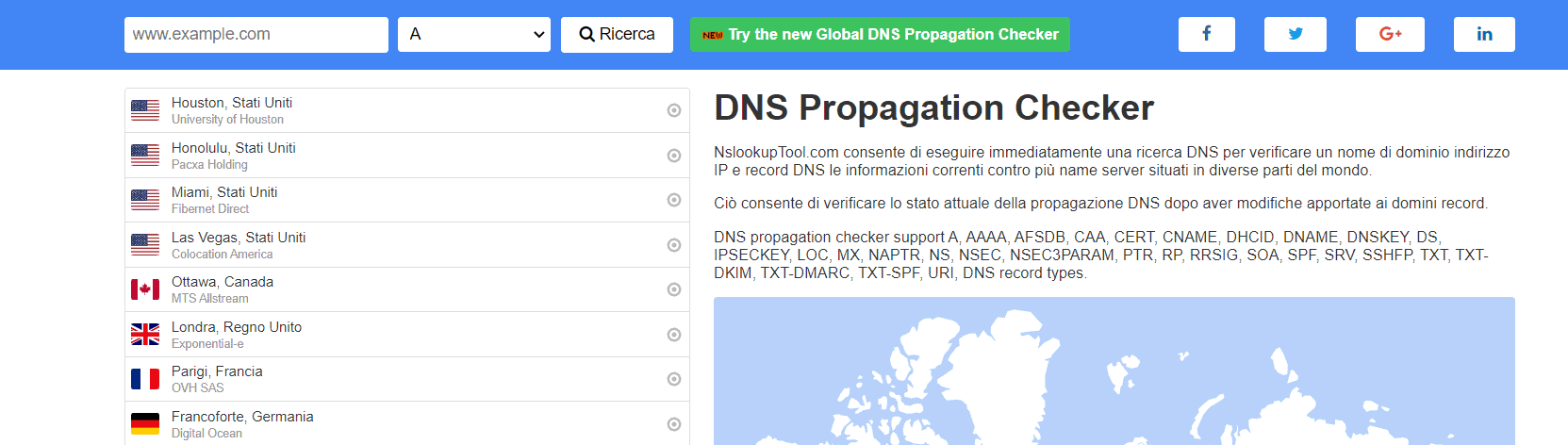 Ogni volta che si modifica o si aggiunge un nuovo record DNS, ci sarà un periodo in cui il record DNS verrà aggiornato sui server di tutto il mondo. Questo periodo è chiamato periodo di propagazione DNS.