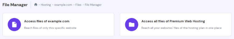 Per accedere a un file PHP e modificarne il codice, è sufficiente accedere al File Manager del tuo server di web hosting. Con Hostinger, il pulsante File Manager si trova sotto File nella dashboard di hPanel.