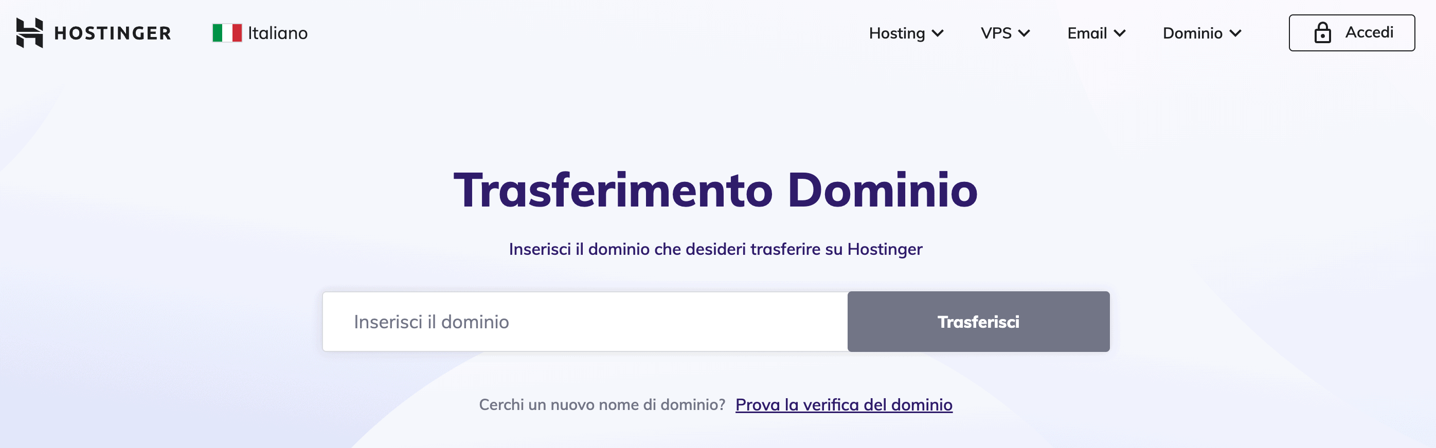 Con Hostinger, gli utenti possono trasferire un dominio da qualsiasi società di registrazione.