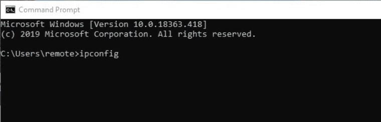 2. Digita ipconfig e premi Invio.