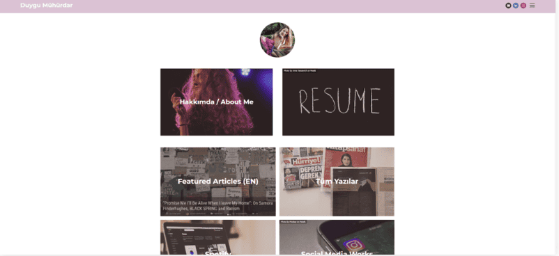 Duygu Mühürdar è una scrittrice di musica che ricopre diversi ruoli nell’industria musicale. Poiché ha più di un articolo da mostrare, l’uso di miniature per rappresentare il suo lavoro scritto e visivo mantiene la homepage pulita ma informativa.