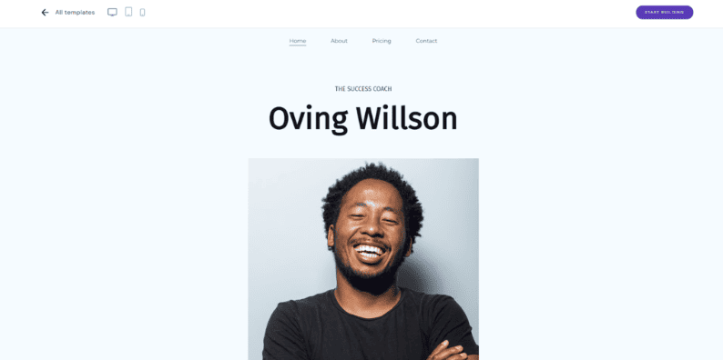 I temi per siti web realizzati da designer sono un ottimo modo per iniziare. La maggior parte dei website builder, compreso quello di Hostinger, offrono ottimi template di siti web di curriculum per portfoli online, quindi non è necessario fare un sito web tutto da zero.