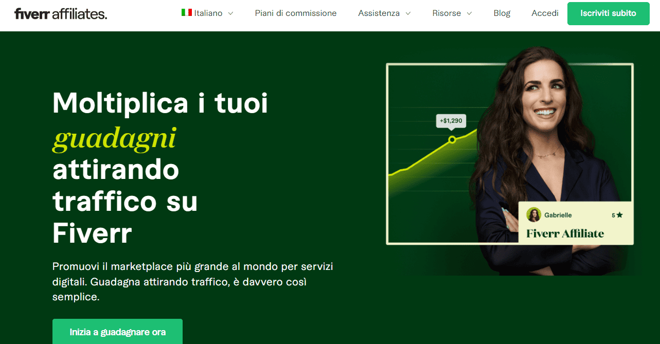 Alcuni programmi di affiliazione popolari includono Fiverr Affiliates, Programma di affiliazione di NordVPN ed eBay Partner Network. Le reti di affiliazione come ShareASale, CJ Affiliate e FlexOffers mettono in contatto gli affiliati indipendenti con le aziende.