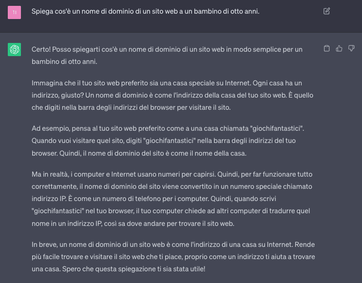 Ad esempio, si può chiedere al chatbot di spiegare lo stesso argomento in un linguaggio più semplice per gli studenti di terza media.