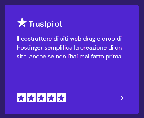 Consigliamo il Website Builder di Hostinger se desideri creare siti web stupendi al miglior prezzo. L’interfaccia user-friendly della piattaforma, le soluzioni di IA e l’ampio set di funzionalità la rendono lo strumento perfetto per chiunque voglia creare un sito web senza sforzo.