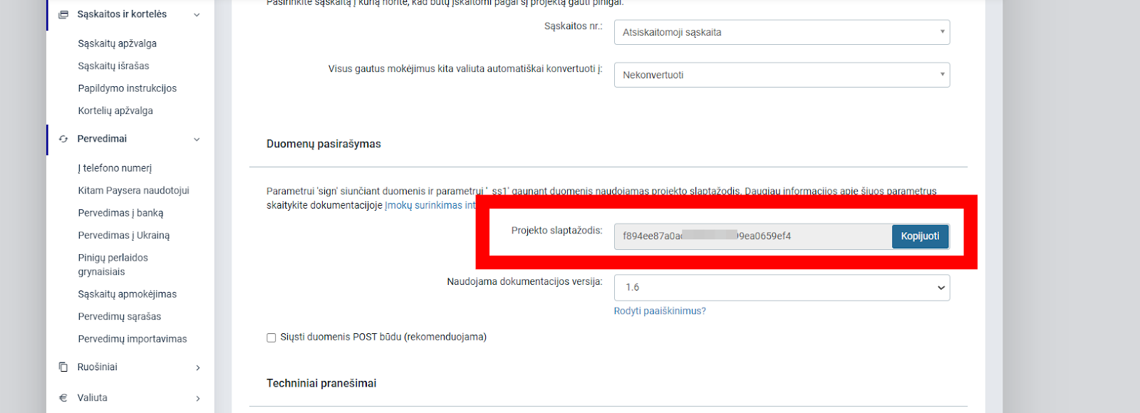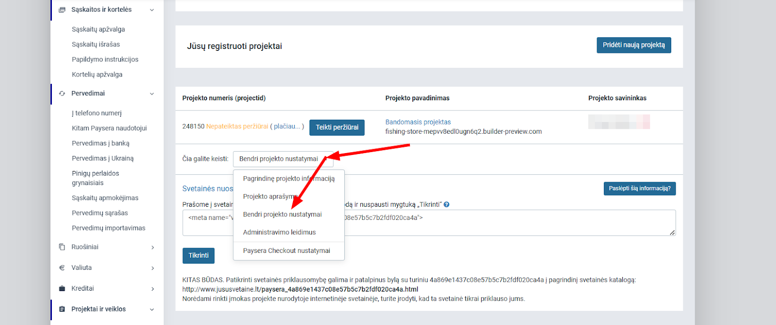 Šia informaciją rasite Payseros paskyroje atidarę “Bendri projekto nustatymai”: