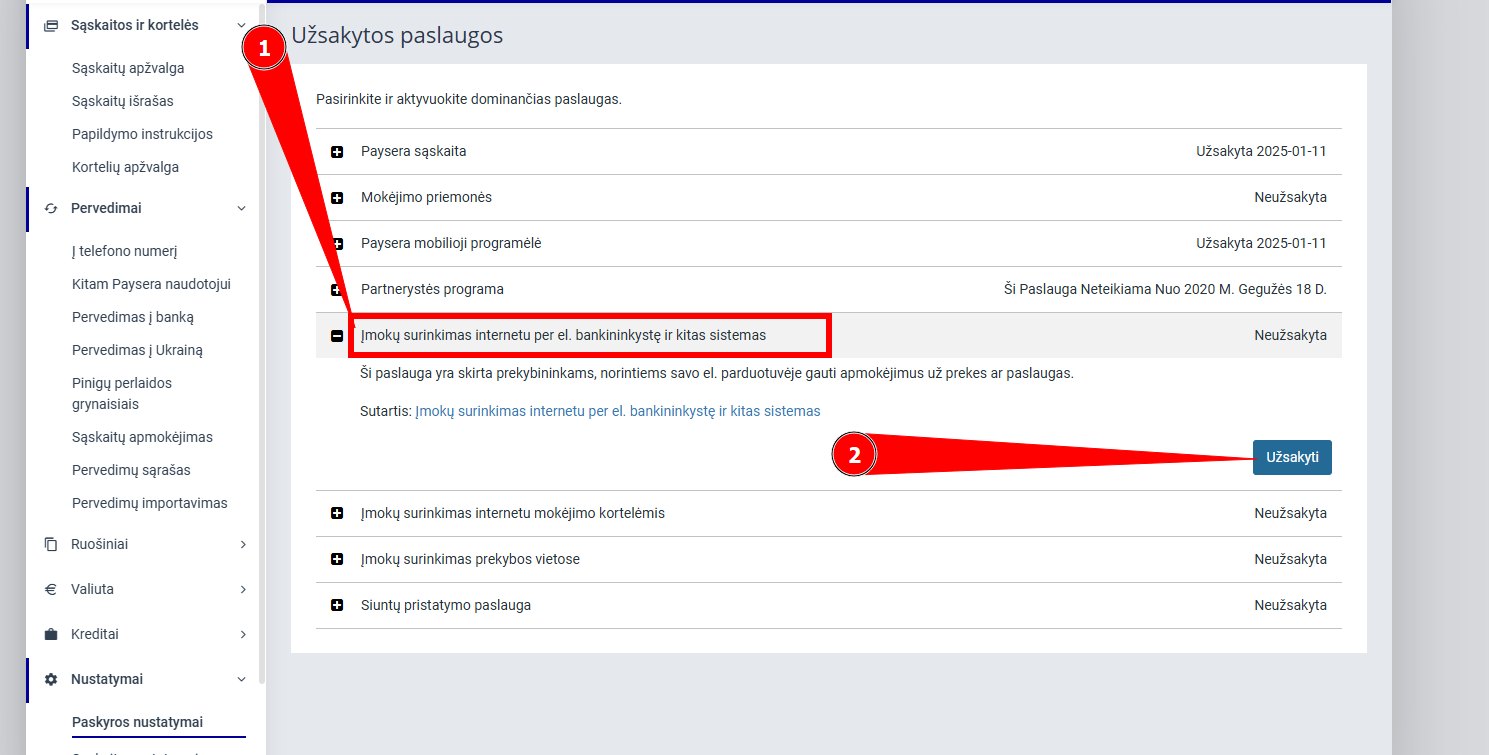 2. Įjungti įmokų surinkimą internetu per el. bankininkystę ir kitas sistemas