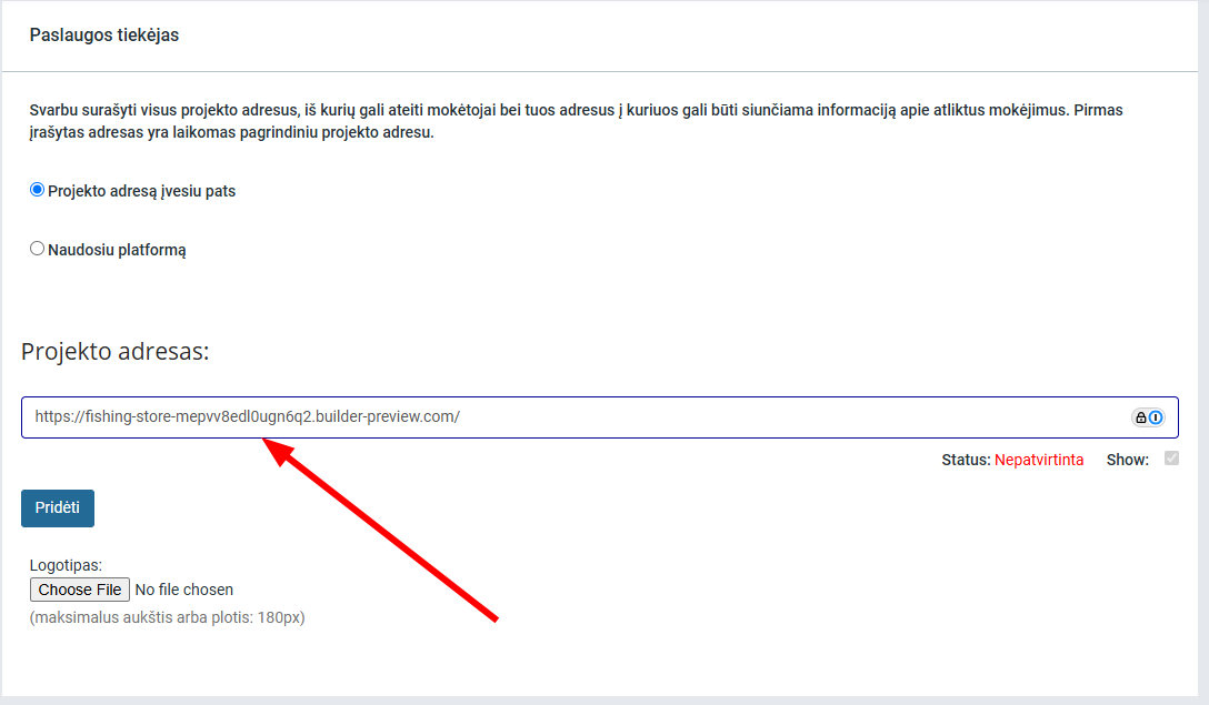 Prijungti projektą prie parduotuvės