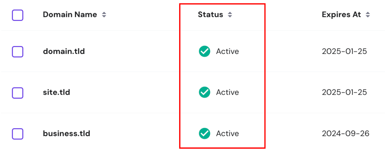 Norėdami patikrinti domeno būseną, savo Hostinger paskyroje atsidarykite puslapį Domenai: