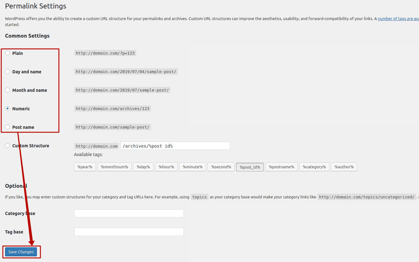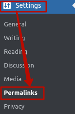 Norint ištaisyti klaidą, tereikia atstatyti nuolatines nuorodas. Prisijunkite prie WordPress administratoriaus srities (domain.com/wp-admin), pasirinkite meniu skiltį Nustatymai (angl. Settings) ir spustelėkite Nuolatinės nuorodos (angl. Permalinks).