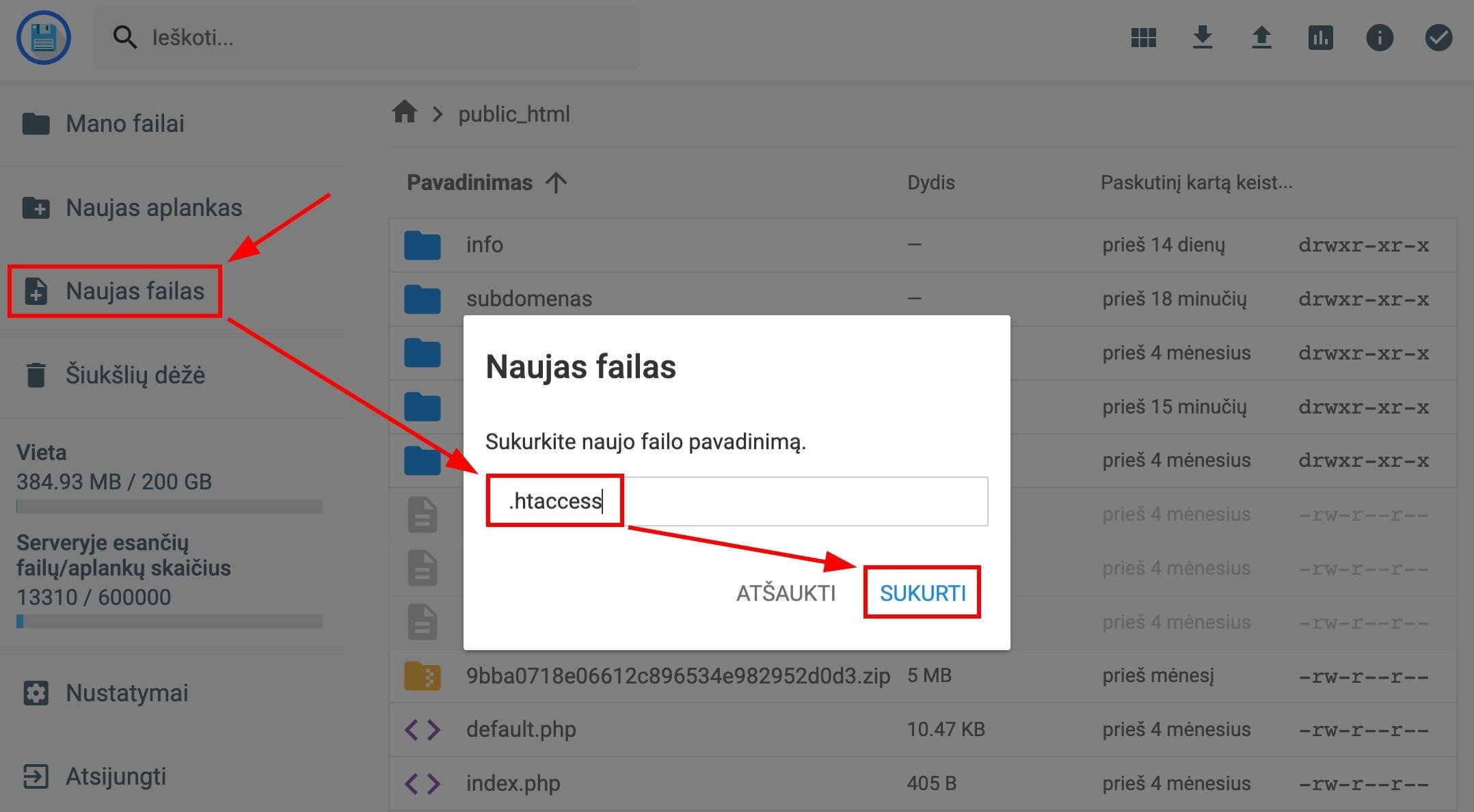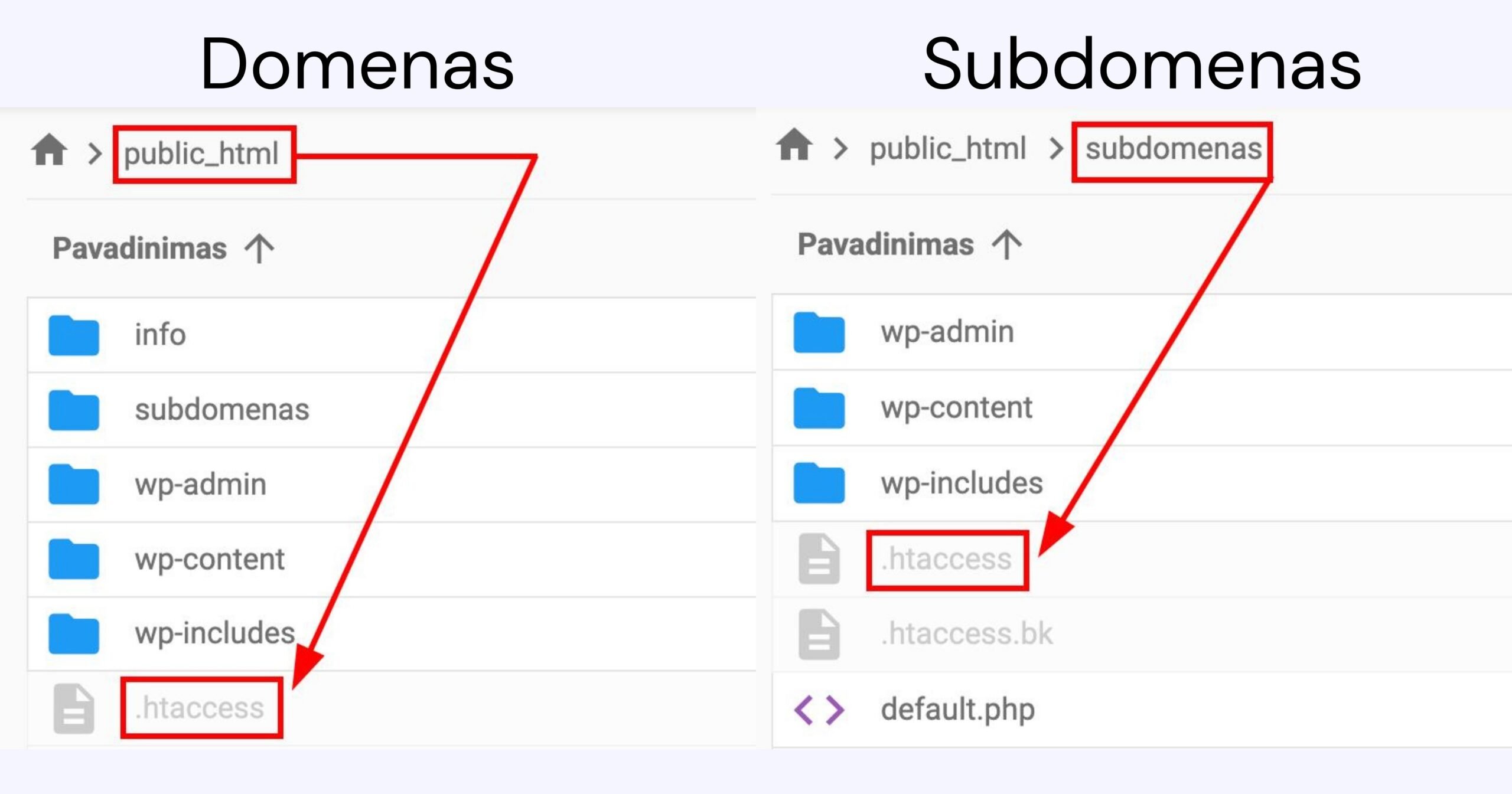 Tada atverkite aplanką, kuriam norite nustatyti kitą PHP versiją. Jei norite pakeisti domeno PHP versiją, atidarykite jo public_html aplanką. Jei kitą PHP versiją norite pritaikyti subdomenui, tuomet eikite į jo aplanką, kurį rasite domeno aplanke public_html.