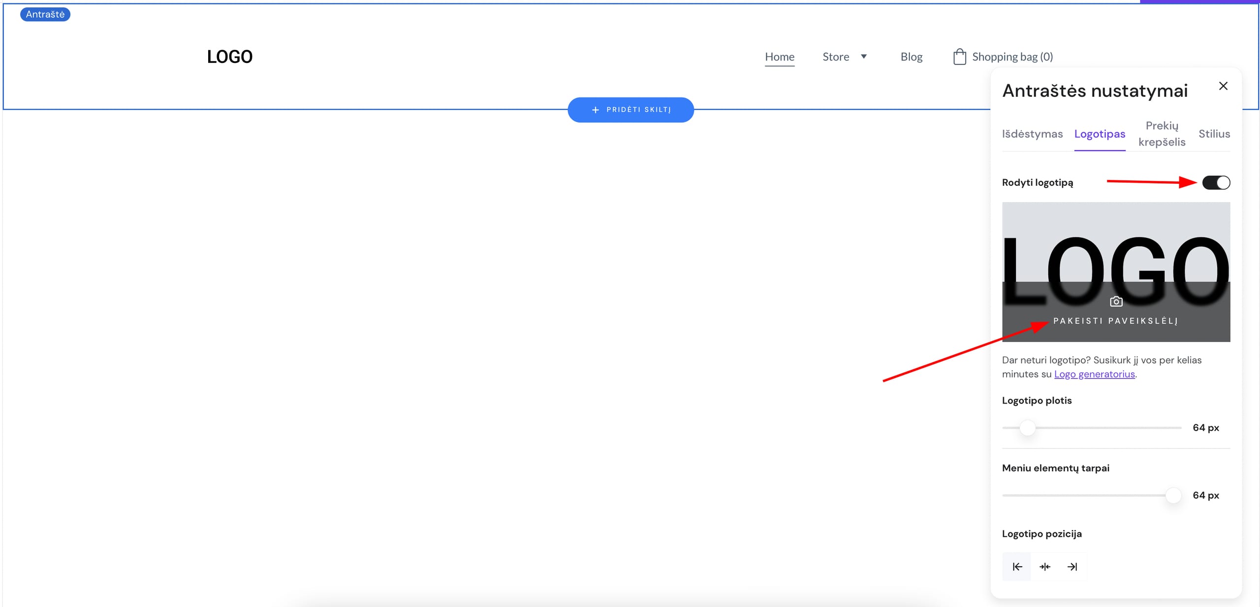 Norėdami pakeisti ar pridėti logotipą į svetainę, sekite šiuos žingsnius: