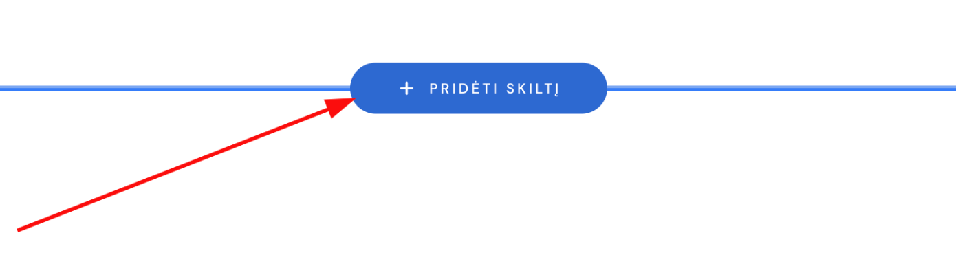 Norėdami puslapyje įterpti skiltį, spauskite Pridėti skiltį – šį mygtuką rasite ant bet kurios skilties horizontalios kraštinės: