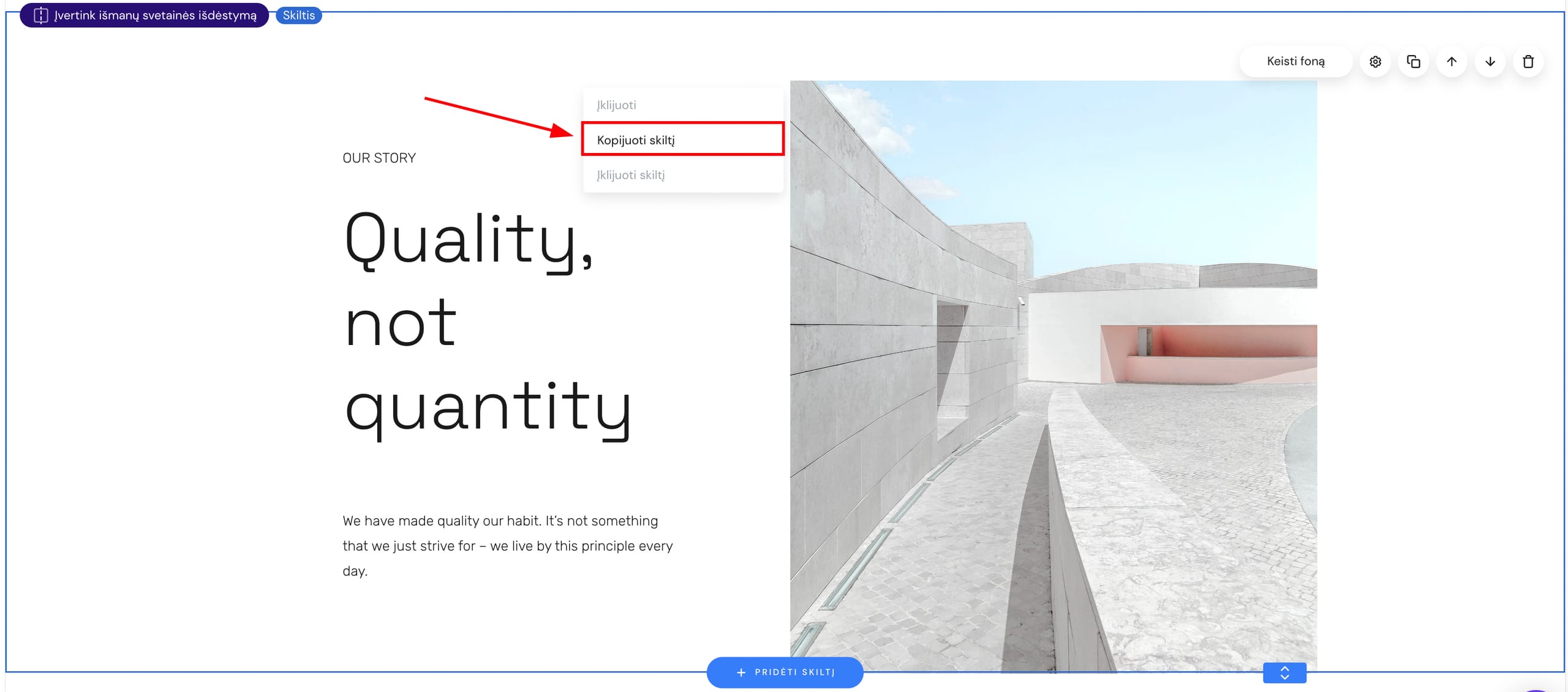 Taupykite laiką ir neperkūrinėkite svetainės skilčių iš naujo – galite jas kopijuoti ir panaudoti tiek tame pačiame, tiek kituose svetainės puslapiuose!