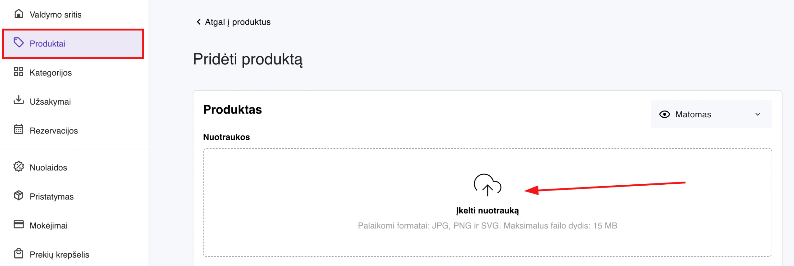 2. Įkelkite visas produkto nuotraukas čia: