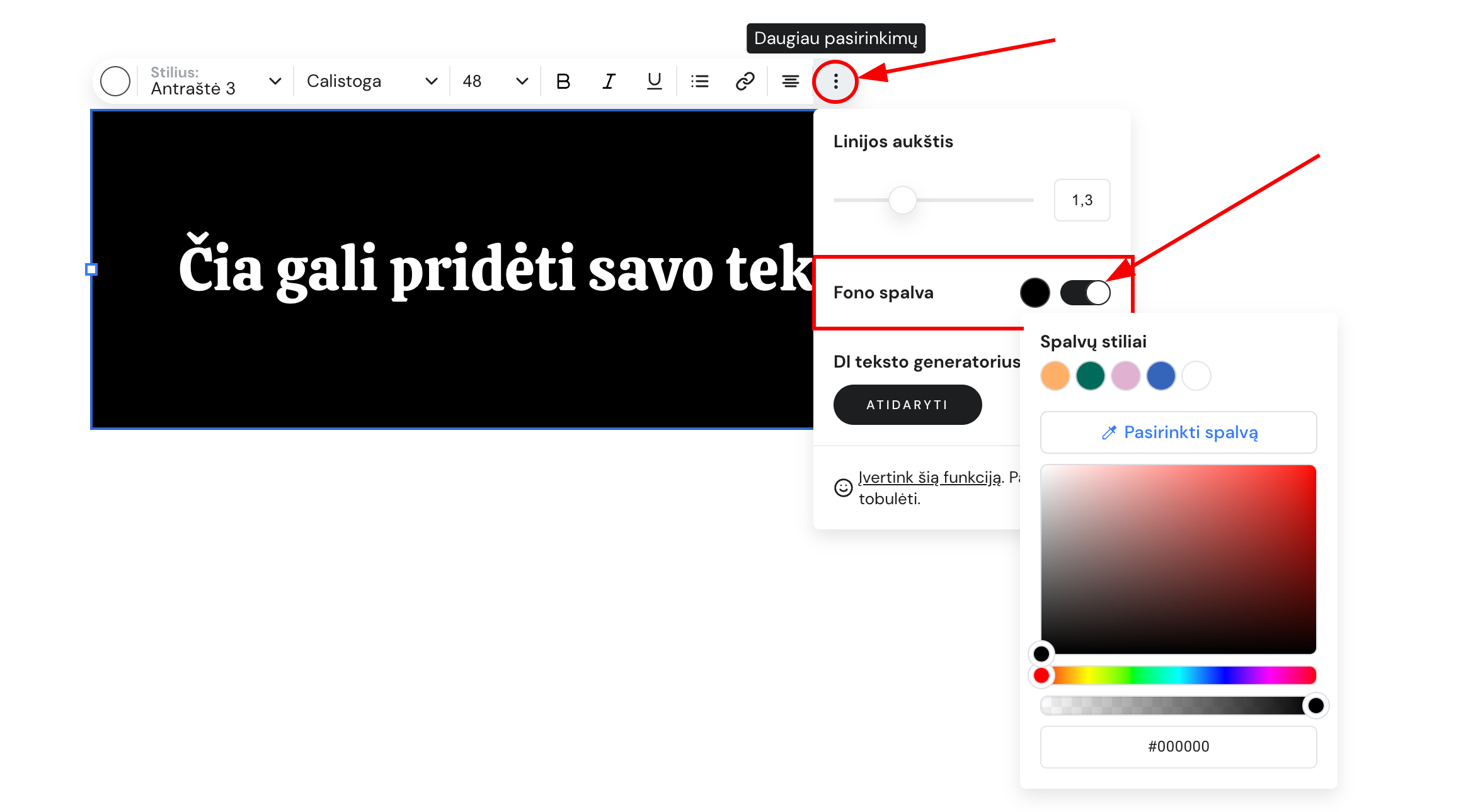 Teksto elementams lengvai nustatysite norimo atspalvio foną: