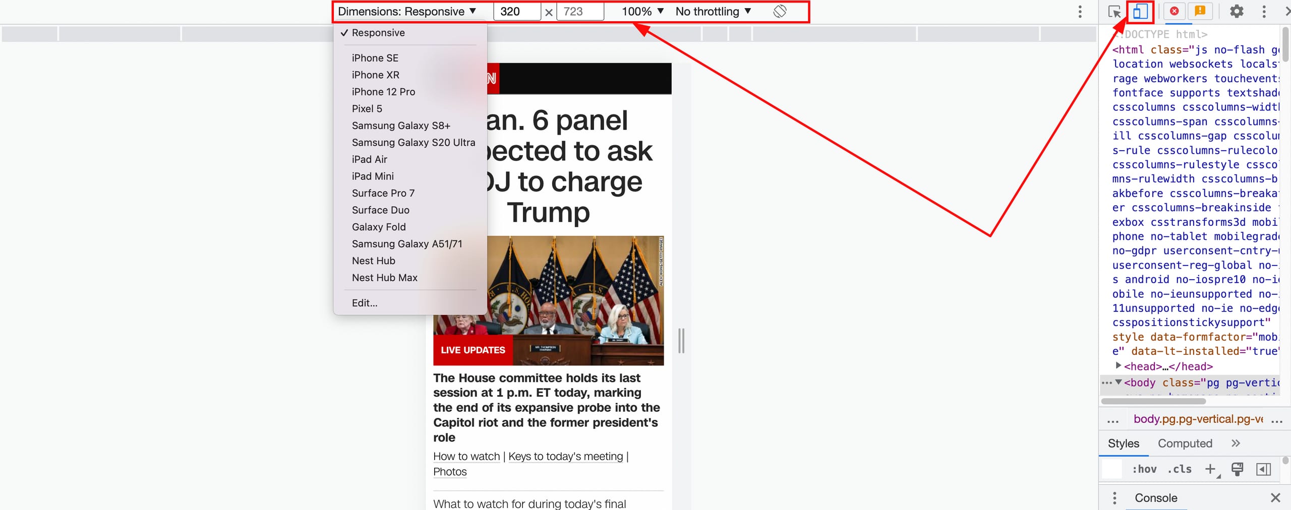 Suskaičiuojama, kad daugiau nei 50% apsilankymų svetainėje įvyktsta naudojant mobilųjį telefoną. Dėl to, labai svarbu patikrinti ir atitinkamai redaguoti mobiliąją svetainės versiją. Norėdami įsitikinti, kad svetainė atrodo gerai visuose įrenginiuose, galite naudoti Google Chrome naršyklėje esančius DevTools įrankius, skirtus simuliuoti pačius įvairiausius įrenginius ir pažiūrėti, kaip juose atrodo jūsų svetainė: