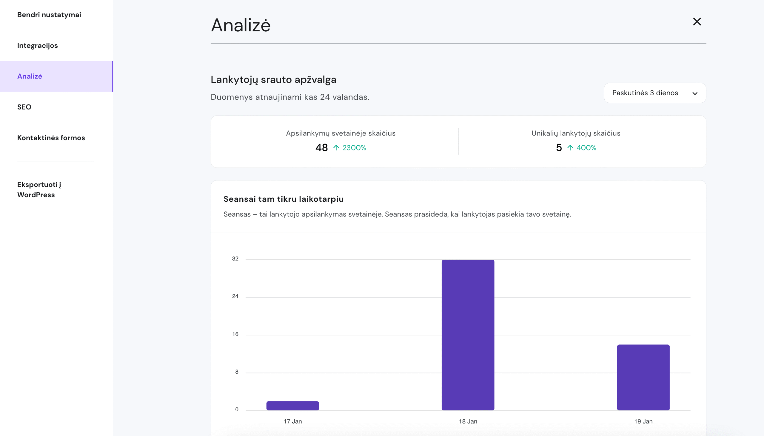 Informacija apie apsilankymus svetainėje pasiekiama tik tada, jei svetainė yra paskelbta
