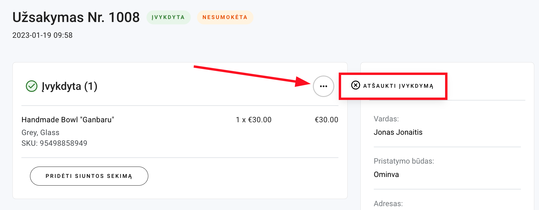 Norint atšaukti užsakymą, jis turi būti neapmokėtas ir neįvykdytas.