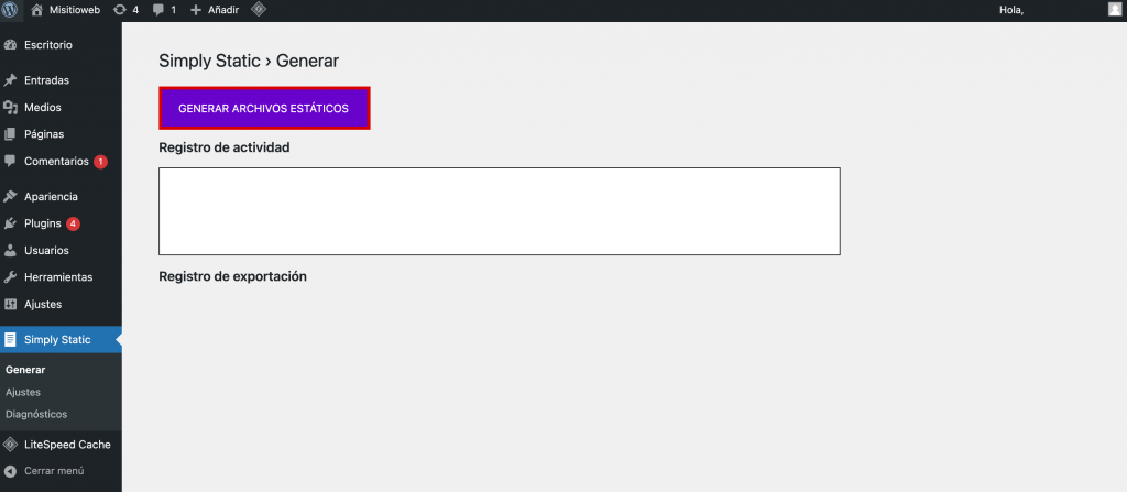 Para convertir un sitio WordPress utilizando Simply Static, configura primero el plugin: