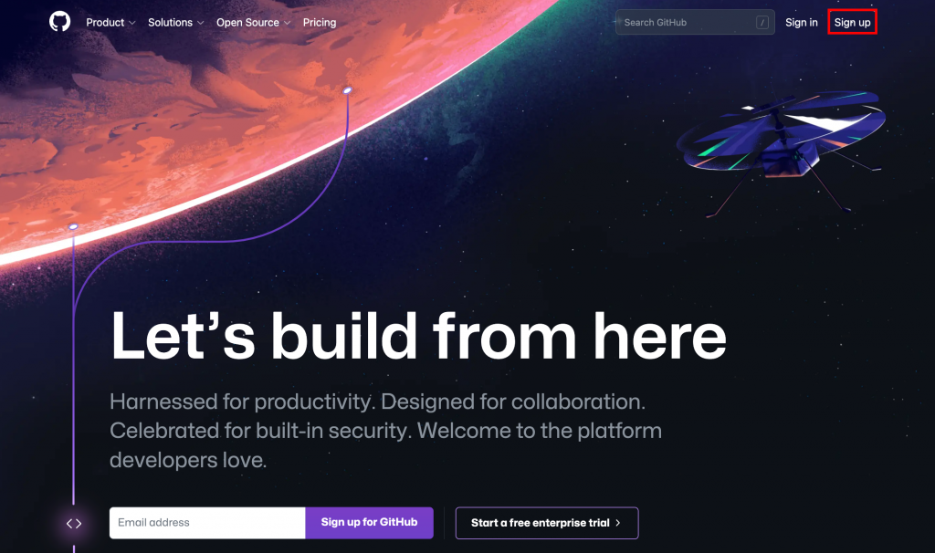 Si ya tienes una cuenta de GitHub, sáltate esta sección e inicia sesión en tu cuenta. De lo contrario, haz lo siguiente: