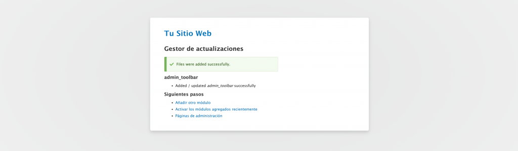 8. Si has instalado correctamente Drupal, aparecerá un mensaje de confirmación en tu panel de administración.