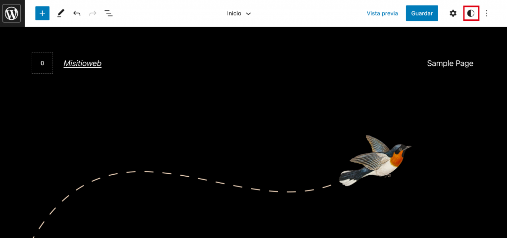 Ve al editor de Gutenberg navegando hasta Apariencia -> Editar. A continuación, haz clic en el icono blanco y negro de la esquina superior derecha de la pantalla para abrir el panel de estilos globales.