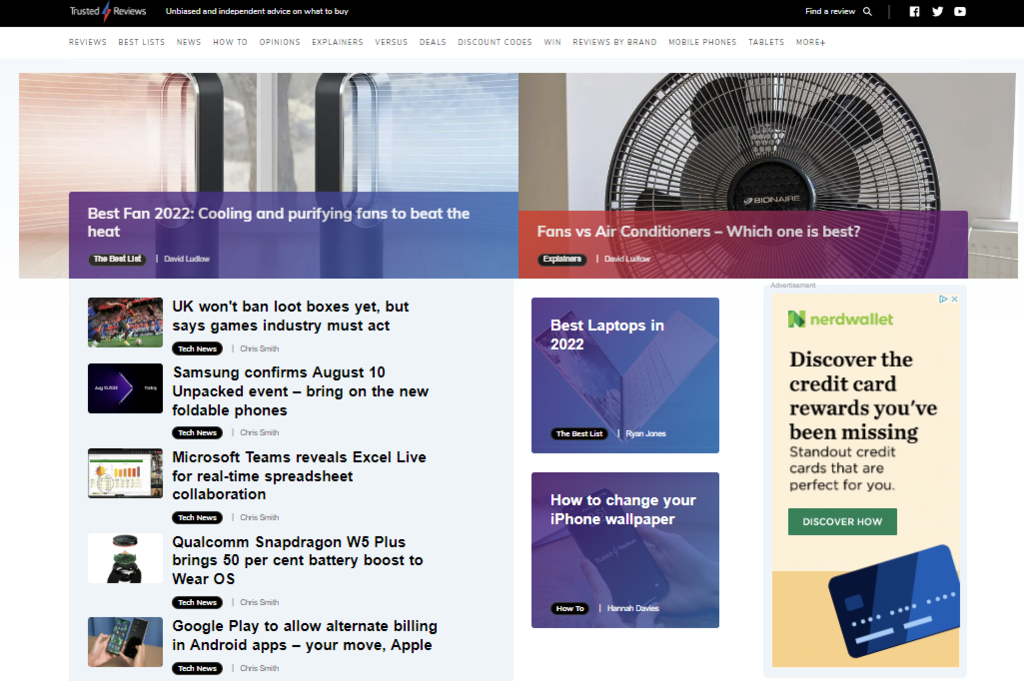 Trusted Reviews is one of the oldest affiliate sites in the tech niche. Its mission is to provide unbiased and independent advice on what tech products to buy, including smartphones, tablets, TVs, laptops, and cameras.