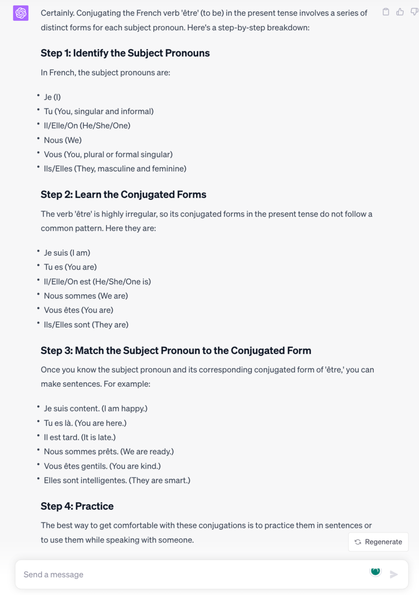 Prompt – Can you explain how to conjugate the French verb ‘être’ in the present tense, step-by-step?