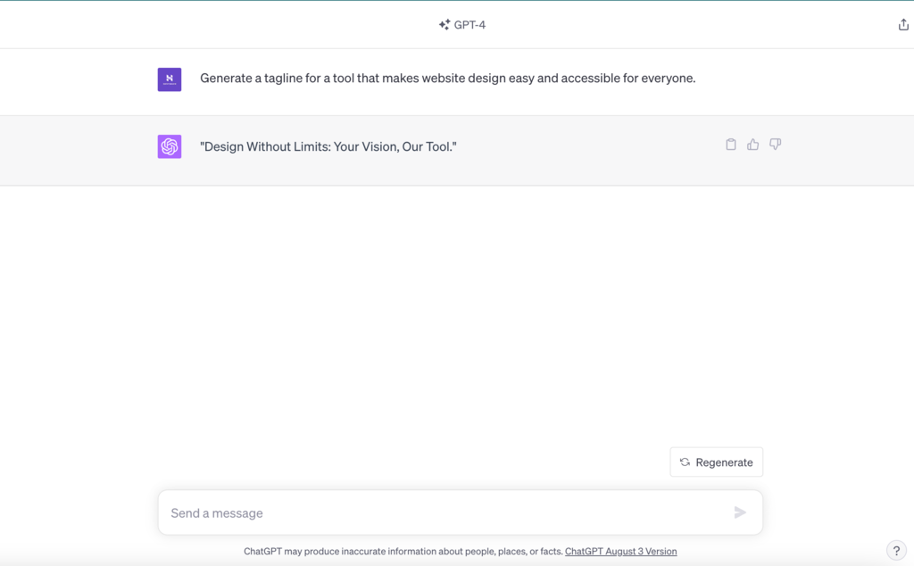 For instance, consider a web agency that wants to generate a tagline for a new website design tool they’ve developed. A well-engineered prompt, in this case, might look like this: