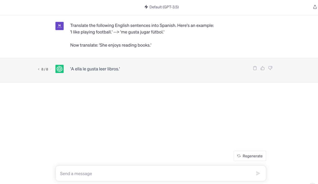 Here’s an example of zero-shot prompting with ChatGPT-3.5: