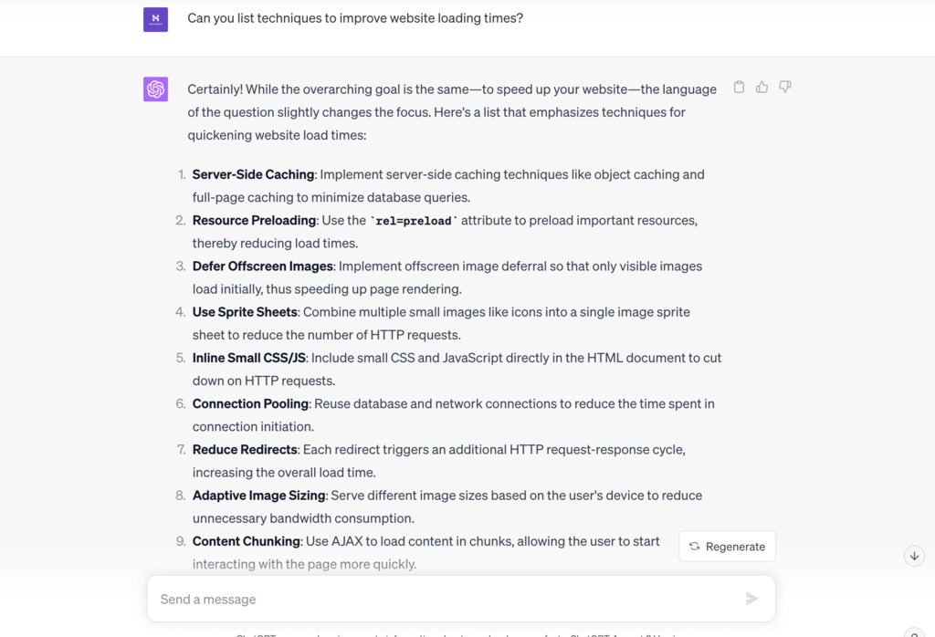 Reframed Prompt – Can you list techniques to improve website loading times?