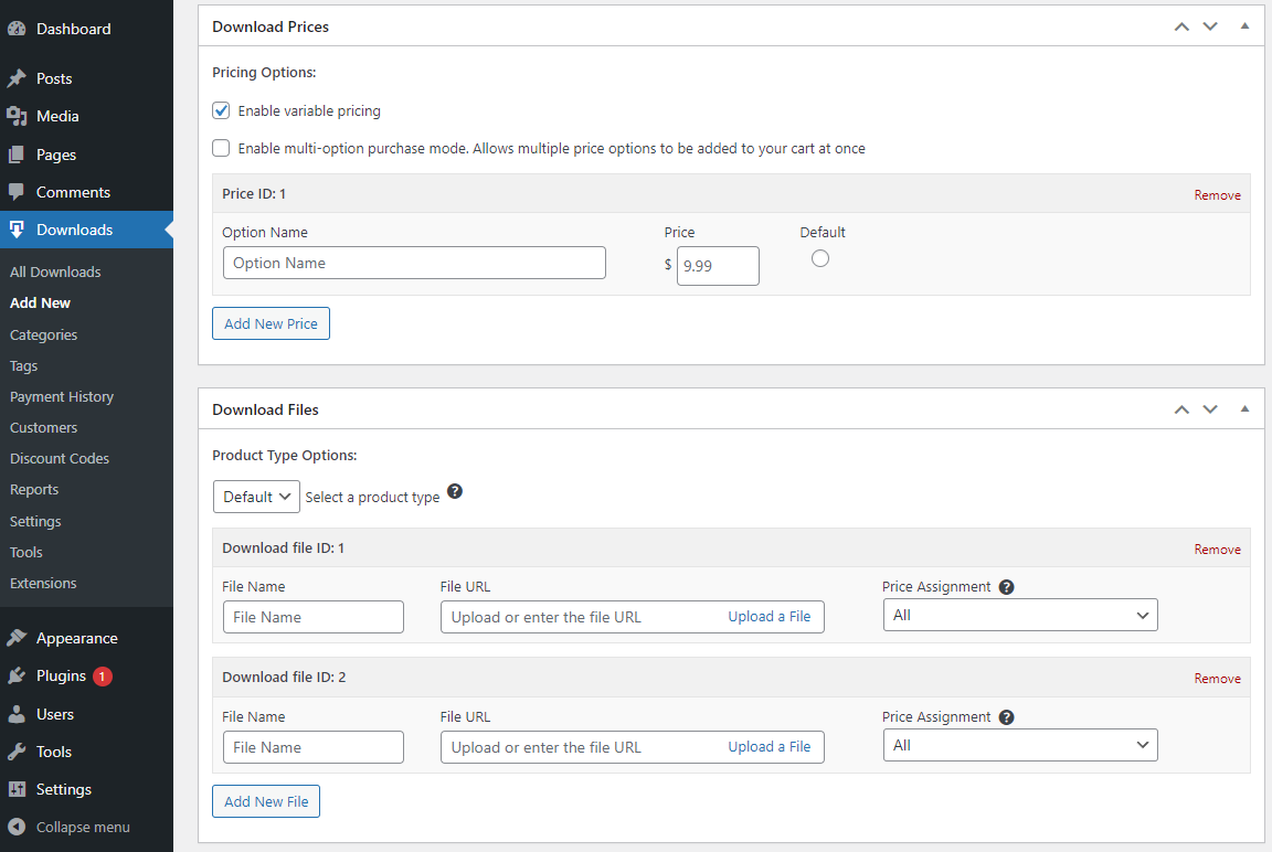 There are many options when it comes to listing and uploading digital downloads. For example, you can add multiple files at different prices to one download. This is useful for selling the same product in different versions.