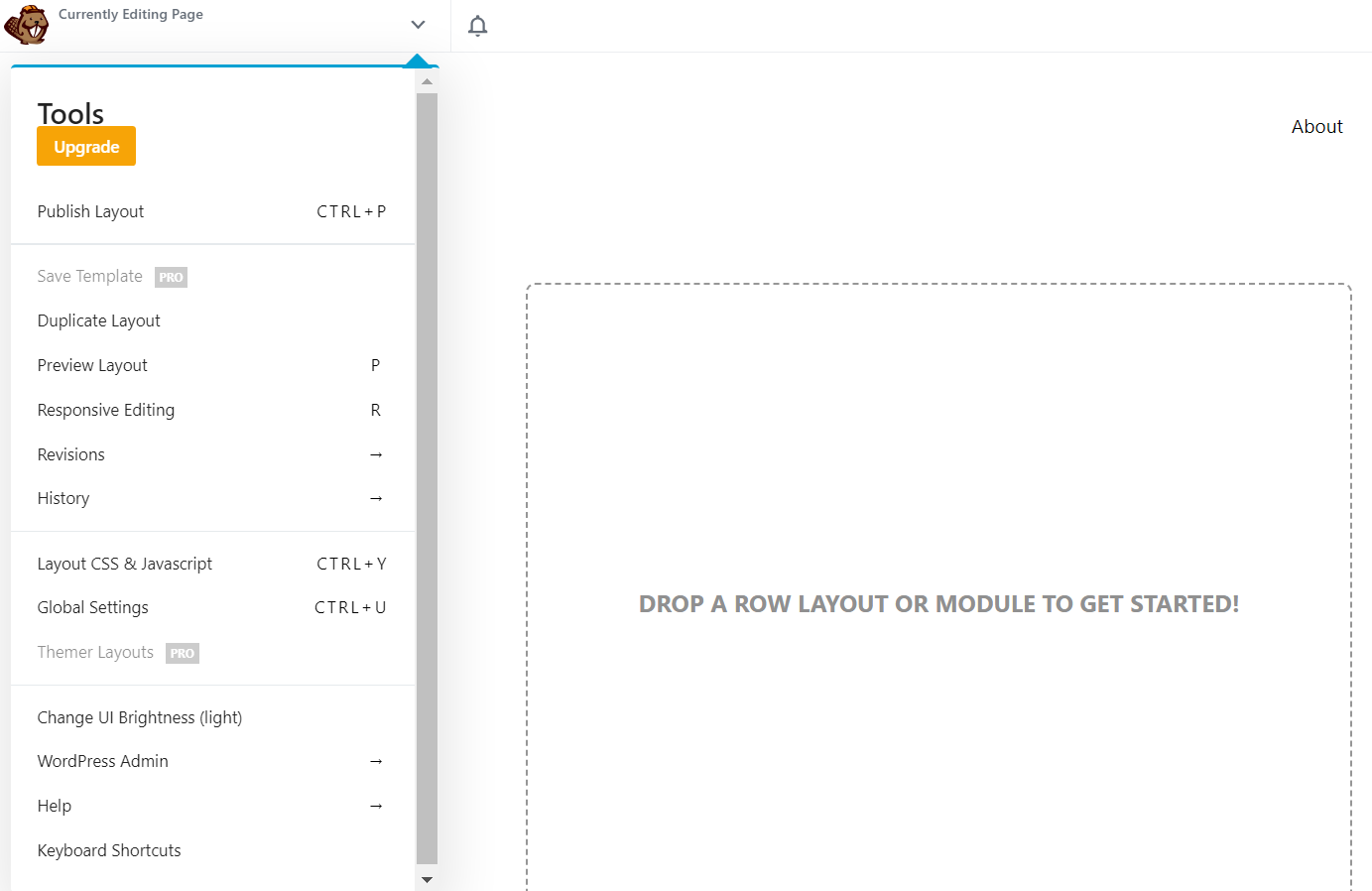 Moreover, Beaver Builder offers a Tools menu on the page’s top-left corner. It allows you to preview, duplicate, and publish layouts quickly. Additionally, there’s a list of supported keyboard shortcuts and a history tab where users can easily review all their actions and spot page issues.