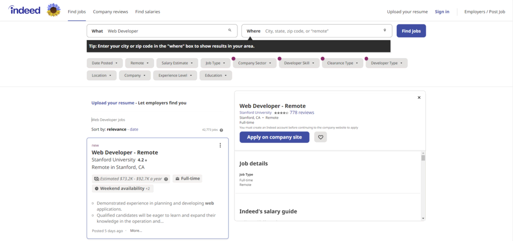 Recruiters from reputable companies often use online job boards like Indeed and Glassdoor to look for web developers ‒ one of those opportunities can be your lucky break.