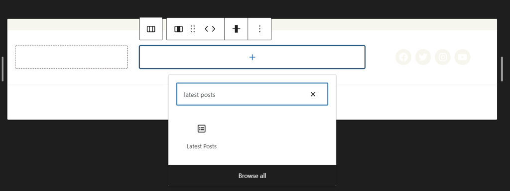 3. Click the Add block (+) icon and search for the Latest Posts block.