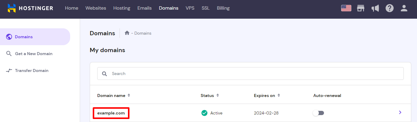 1. Open the Domains section and select your domain.
