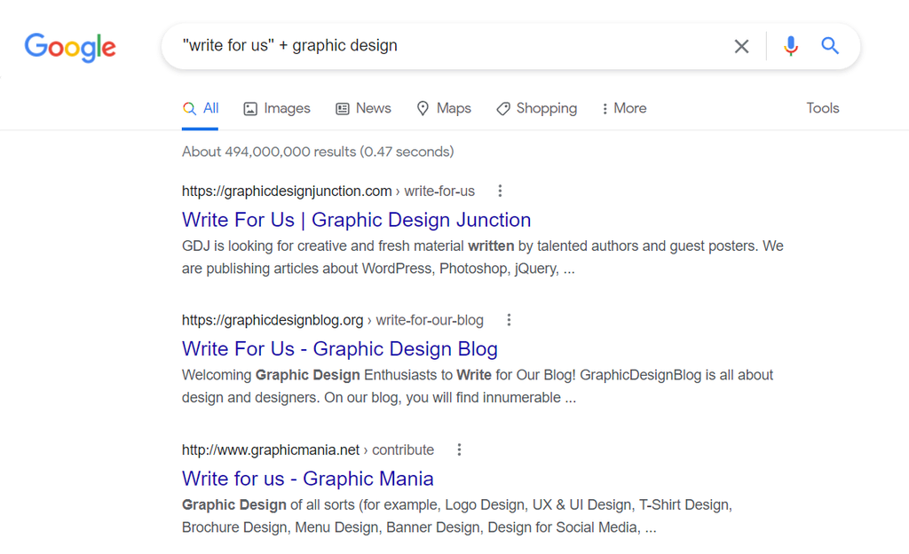 SEO tools like Alexa and Ahrefs are excellent for finding guest blog opportunities as they showcase sites relevant to specific topics and check competitors’ backlinks. An alternative is to type “write for us + [a topic]” on search engines.
