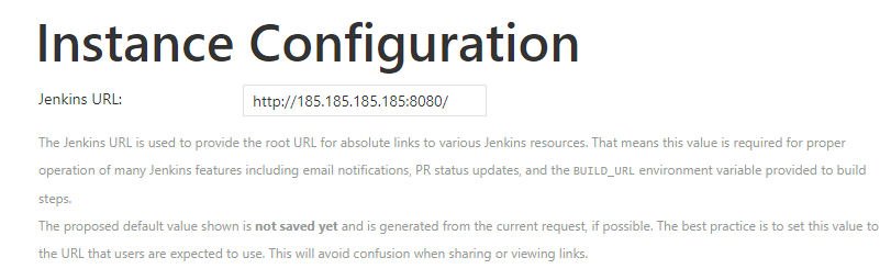 Then specify the preferred Jenkins URL and finish the configuration process.