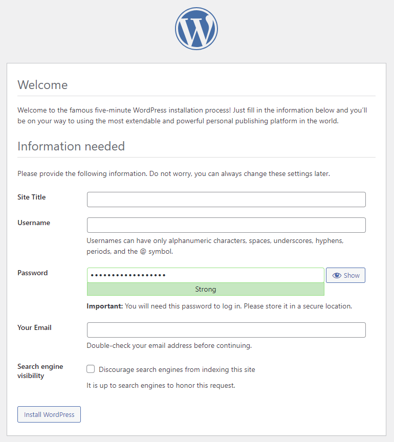 Now that everything is set, you can start the WordPress installation process. Follow these installation instructions to set up your WordPress environment: